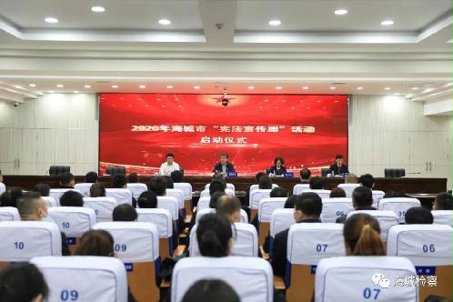 海城市检察院30名干警参加了市委召开的开展海城市“宪法宣传周”活动启动仪式,市委政法委书记欧阳捍东、市委宣传部部长张丹凤同志做重要讲话,全面学习贯彻全国宪法宣传周“深入学习宣传习近平法治思想,大力弘扬宪法精神”的主题,并在会场庄严宣誓。