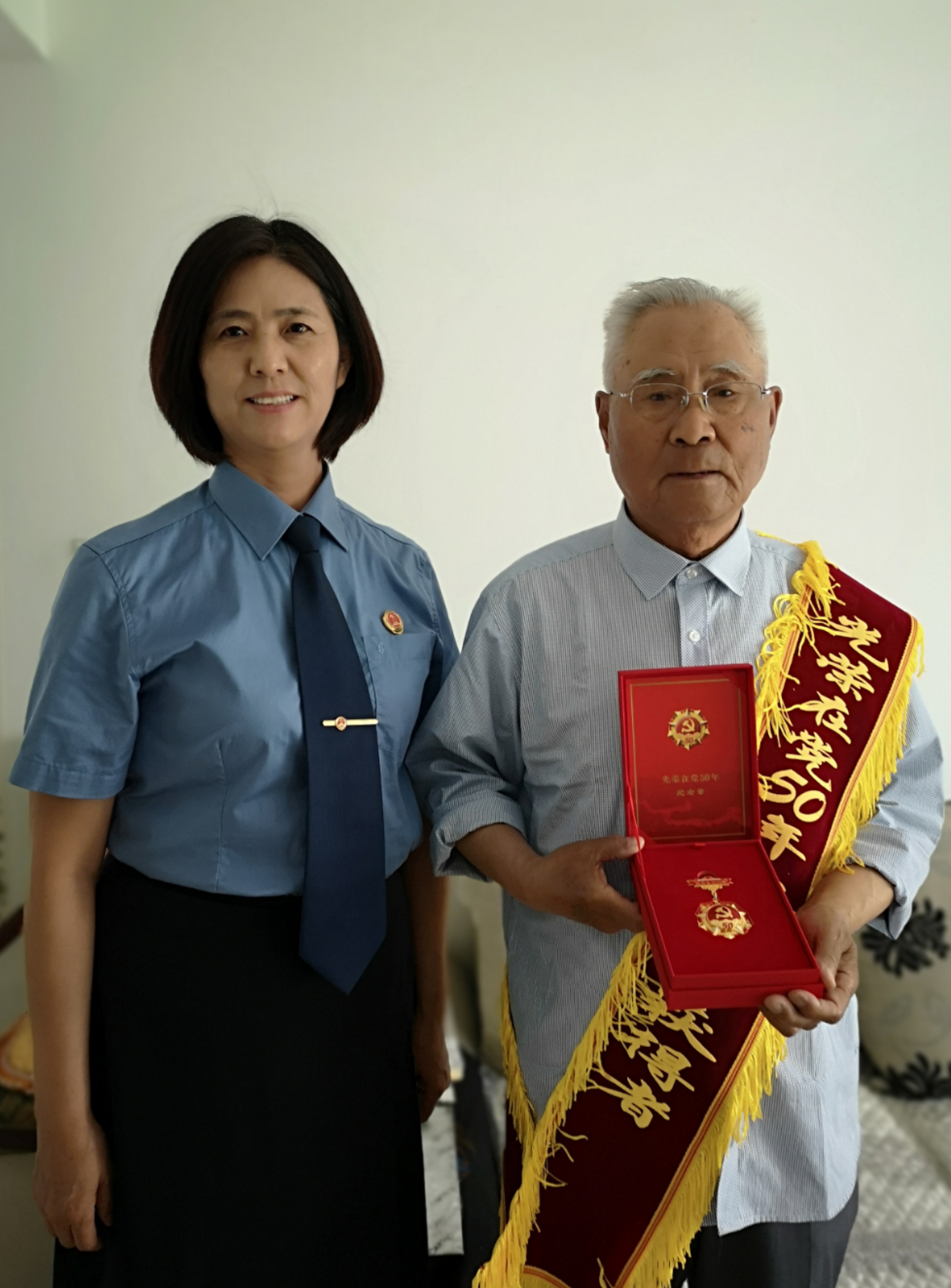 为把党中央的关怀及时传递给每一名老党员,让他们在建党百年之际真切感受崇高的政治荣光,6月29日,葫芦岛市检察院为老党员颁发“光荣在党50年”纪念章。市检察院共有张庆荣、王德昌、张景才、吴玉平、张兴凌、吴玉才、许中华、张树海、李希林、李济德、阮华盛等11名老党员获颁纪念章,虽然他们历经岁月的身姿不再挺拔,但在纪念章前正气却依然浩气长存。祝愿他们如这枚纪念章所寓意的那样,勇攀高峰、永葆青春。他们是共产党员的楷模,更是全体检察人员学习的榜样。