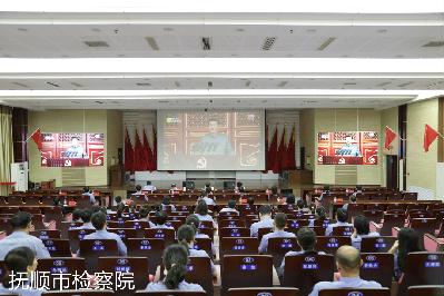跟唱国歌、国际歌,庄严肃穆,朗声共振,在起立之时,许多党员干警纷纷流下了激动的泪水。当听到习近平总书记强调“中国人民也决不允许任何外来势力欺负、压迫、奴役我们”“任何人不要低估中国人民捍卫国家主权和领土完整的坚强决心、坚定意志、强大能力”“新时代的中国青年要以实现中华民族伟大复兴为己任”,全场响起的三次掌声和欢呼声让全体检察干警心潮澎湃、为之震撼。