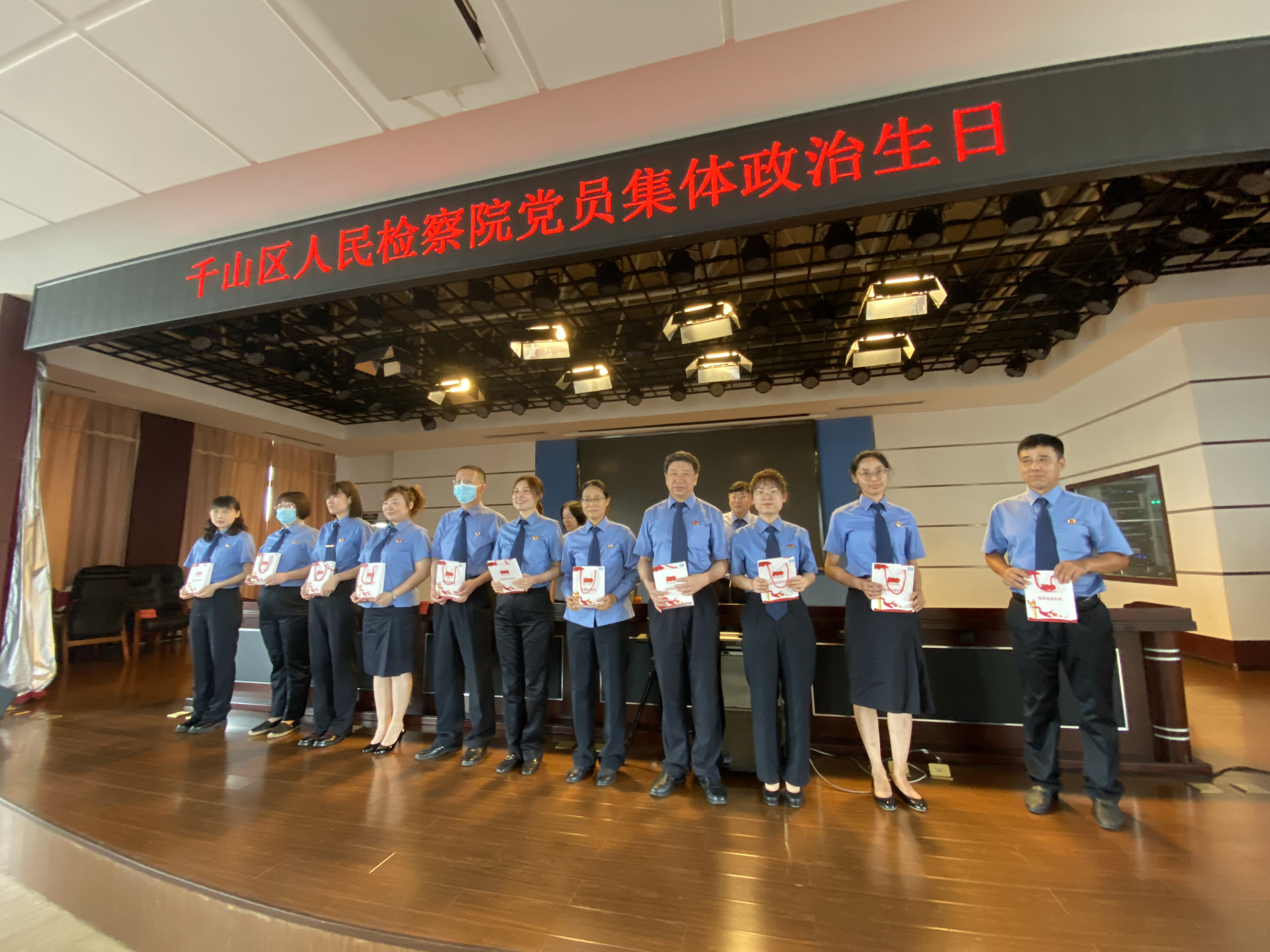 为扎实开展党史学习教育,加强党员干部党性修养,强化党员政治身份认同,加强党员干部过政治生日的仪式感,迎接中国共产党建党100周年,确保全体检察干警不忘初心、牢记使命,七一党的生日前夕,鞍山市千山区检察院组织开展了集体过“政治生日”主题党日活动,为6、7月期间入党的所有检察干警集体过一次特殊的生日。