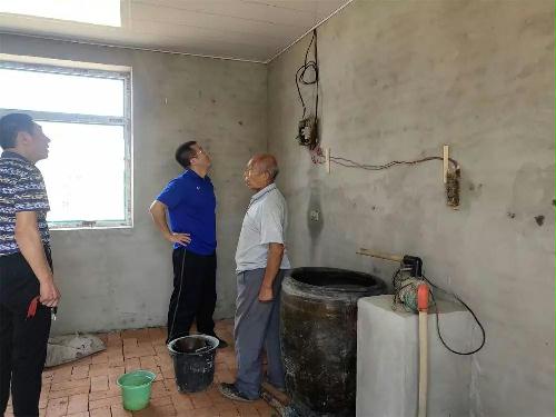 巨龙村黄花城组的王甲仁家,是今年改造完成的危房,虽然这一户今年不用再因暴雨转移人口,但新改建的危房工程质量依然是第一书记朱元兴关心的。降雨来临之前,朱元兴带领治保主任来到王甲仁家验收房屋质量,确保村民住房安全。