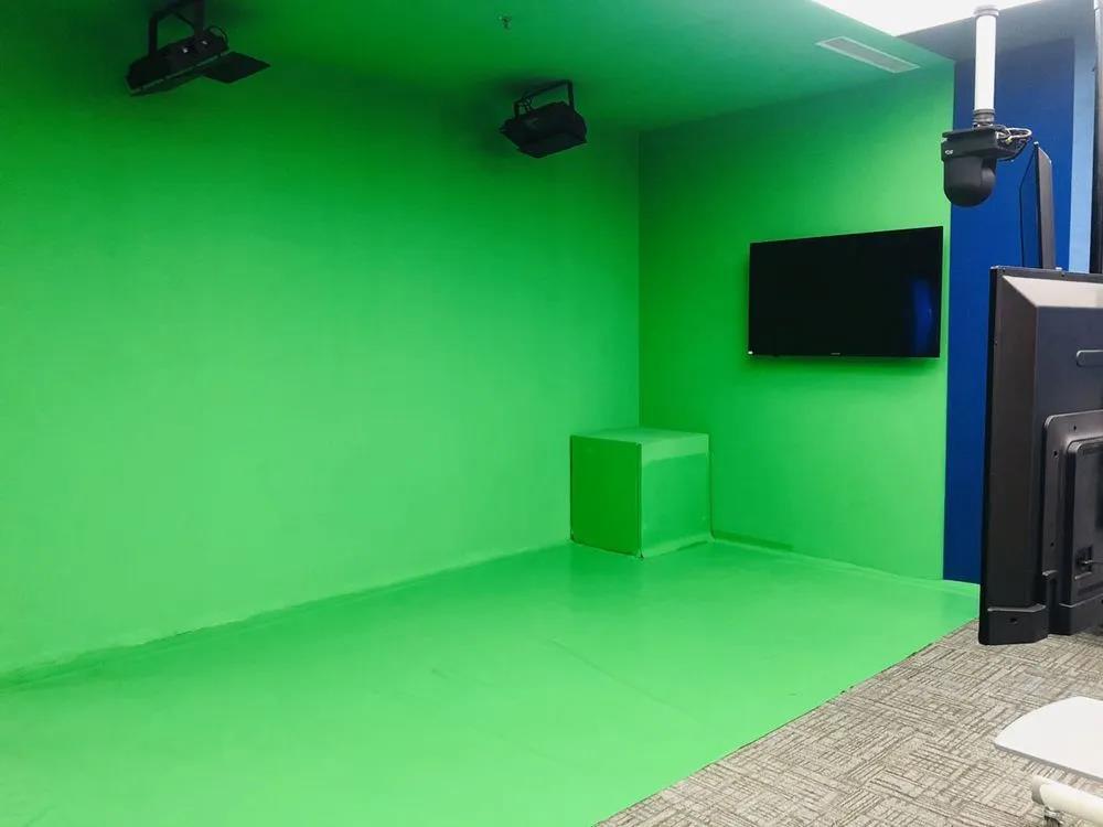 视频演播区能完成视频录制和对外新闻发布工作,该区设有无线便携影像直播录播工作台、新媒体抠像合成影视工作站,检察干警可在此处“传播检察新声音”。