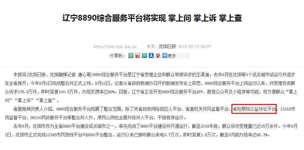 公益诉讼检察部门依托8890综合服务平台搭建群众反映问题信息共享平台)