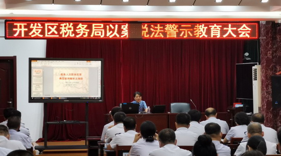 近日,应盘锦市经济开发区税务局邀请,盘锦市兴隆台区色花堂刑事检察的检察官为税务局干部上了一堂预防职务犯罪警示教育课。