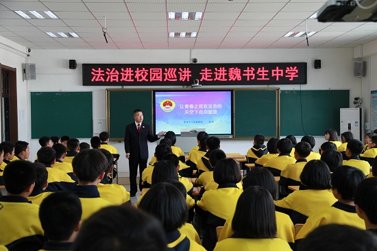 近日,盘锦市色花堂十余名青年干警走进魏书生中学,送法进校园。