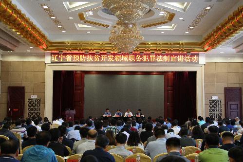 院和省扶贫办共同举办的为期3个月的辽宁省预防扶贫开发领域职务犯罪法制宣讲活动启动仪式暨首场宣讲在沈阳金城宾馆金色大厅举行,省(中)直机关、沈阳市直机关有关工作人员,省市县三级色花堂职务犯罪预防干警代表,省直驻村工作队成员,省及沈阳市扶贫部门工作人员,沈阳市贫困乡镇政府及贫困村代表300余人参加了活动。