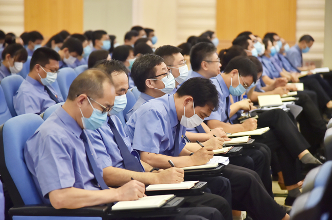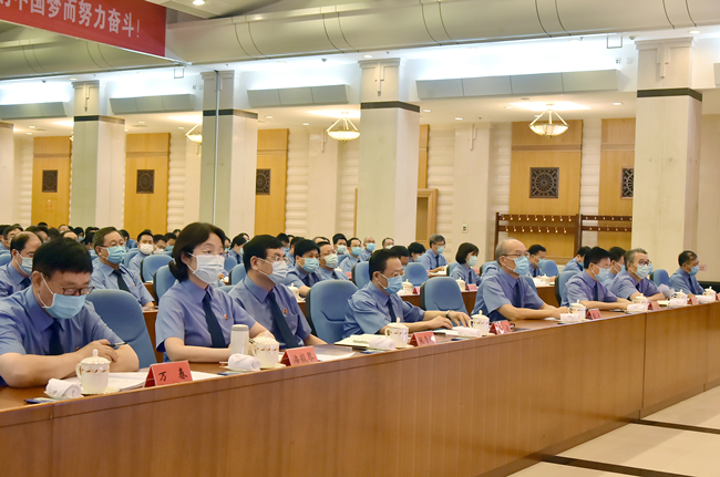 最高检机关全体人员在主会场参加学习。