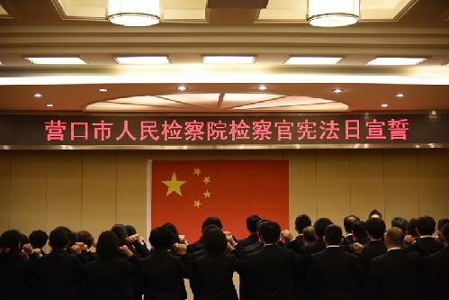 为强化检察人员崇尚宪法法律的信念,12月4日国家宪法日,营口市检察院举行了检察官宪法日宣誓。市检察院党组副书记、副检察长栾奕,反贪局局长栾学思,政治部主任吴晓光及40余名检察官参加了宪法宣誓。宣誓由反贪局局长栾学思领誓。