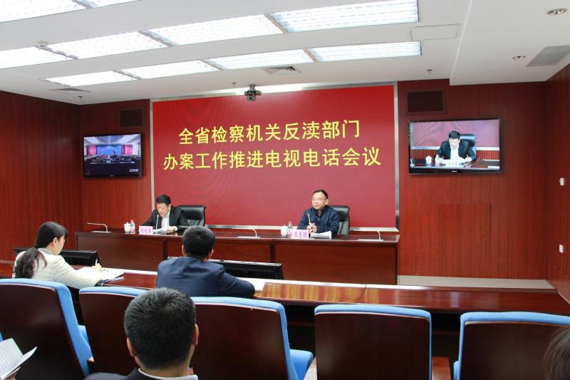 院召开全省检察机关反渎部门办案工作推进电视电话会议。省院党组成员、反渎局局长杜迎春出席会议,市(分)院分管反渎工作副检察长、反渎局局长、中层干部和省院反渎局全体干警参加会议。