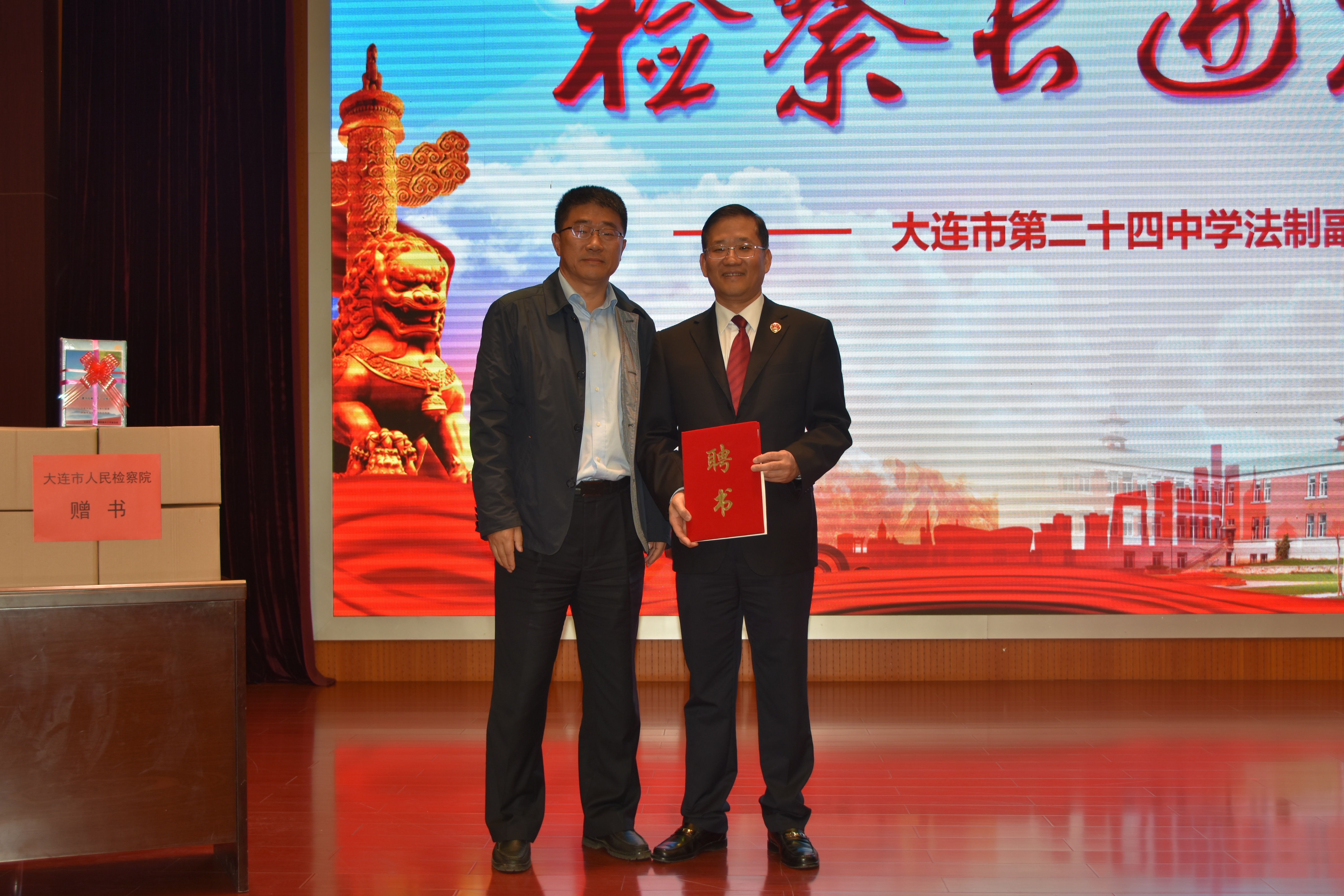 近日,大连市检察院检察长吴喆受聘担任大连市第24中学法治副校长,以普法教学工作者的身份走进校园讲授法治教育课程,开展普法活动。