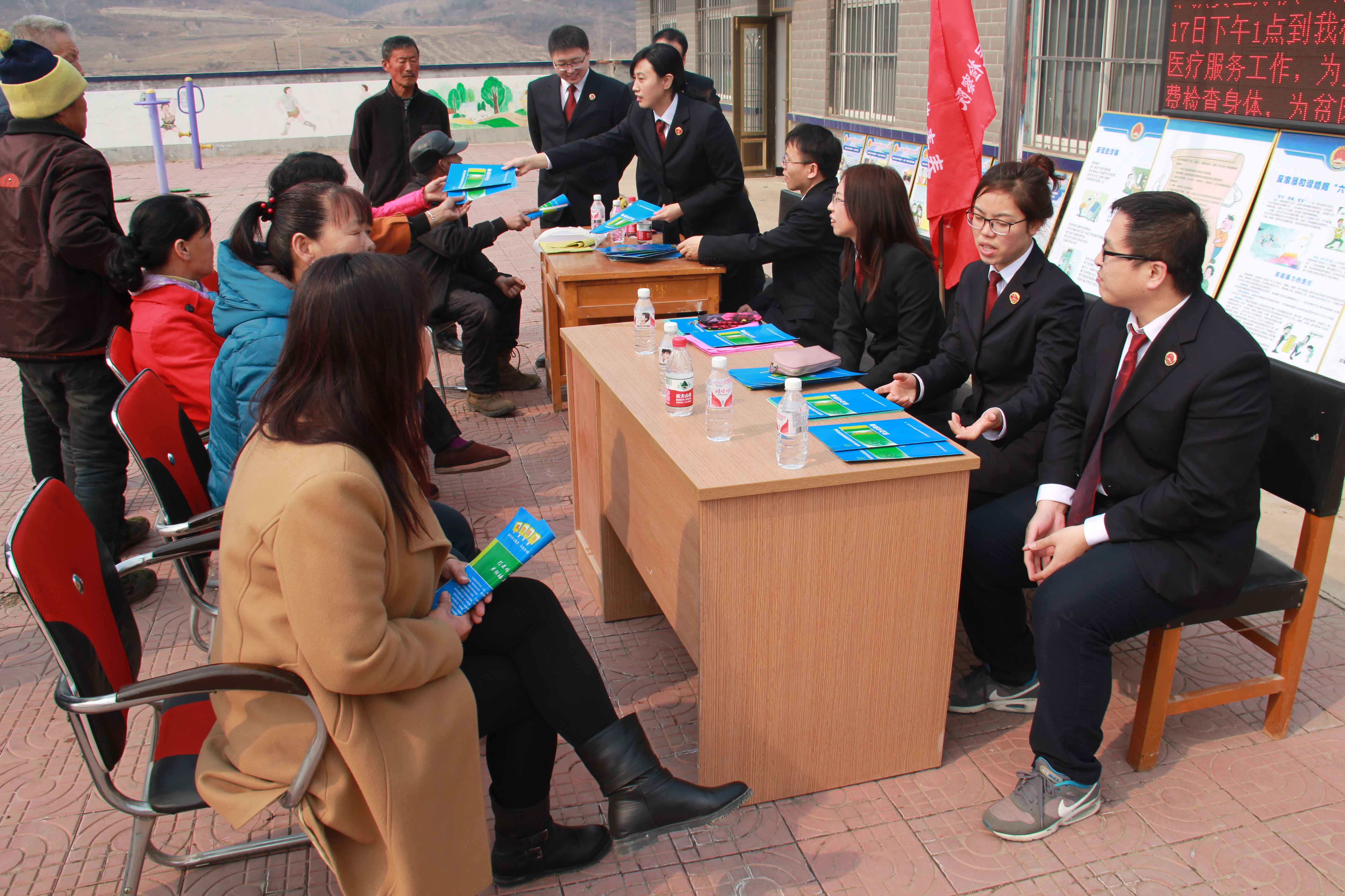 普法宣传中,检察干警们热情接待村民咨询,耐心细致地为村民答疑解惑。干警向村民群众发放通俗易懂的关于扶贫领域的法治宣传资料,宣传国家扶贫政策和法律知识,并逐一耐心讲解。干警们在与村民攀谈中,了解惠农政策落实情况,提高当地村民的法律意识和法治观念,增强他们学法、守法、用法的自觉性。结合“五包五促”积极开展送法下乡活动,及时了解民情民意,针对村里常见的邻里纠纷、家庭纠纷、劳务纠纷开展有针对性的法律讲座,增强群众法治意识和依法维权意识。