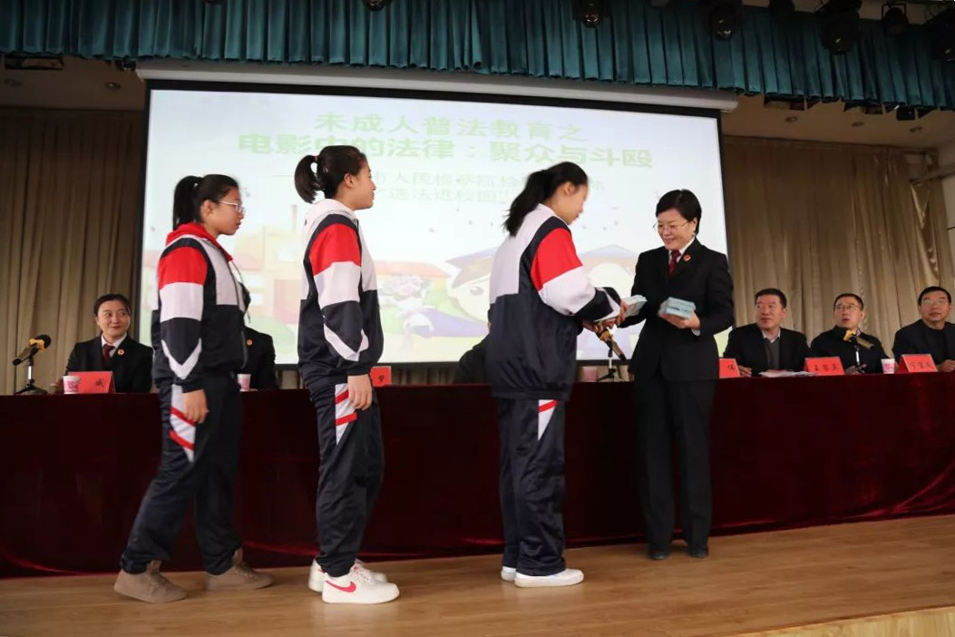 聘任仪式之后,市检察院的检察官以电影为切入点,利用未成年人喜爱的电影场景,结合真实的案例,为实验中学学生带去了一堂别开生面的法治公开课,生动有趣地将法律知识及自护知识通过案例的形式教授给同学们。同学们纷纷表示受益良多,并希望以后多开展类似的法治活动。