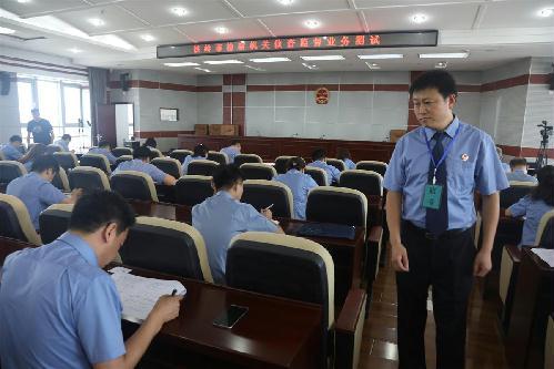 此次业务能力测试分为笔试和侦查监督业务实际操作两部分。笔试部分涵盖刑法、刑事诉讼法相关知识,扫黑除恶相关规定以及当前实事政治。实务操作部分通过虚拟侦查卷宗,考核干警的实际办案能力和立案监督、侦查活动监督两项监督能力。测试现场采取全程录像形式。全市两级院全体侦查监督干警参加了测试。