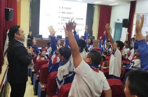 法治教育课上,针对小学阶段学生的特点,检察官采用了以动画片播放为主,互动交流形式为辅的授课方式,用小动画讲授法律大道理。