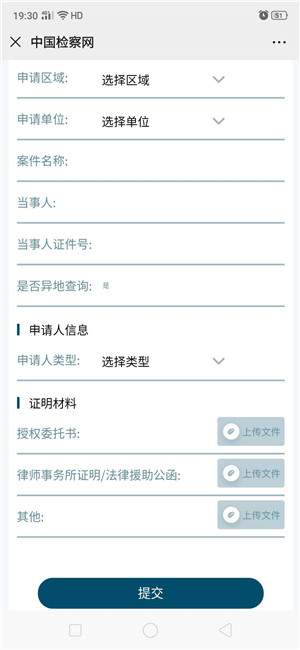 点击屏幕右侧的“申请绑定”(如图3-3),然后就会显示需要填录的案件信息,完成填录,上传委托书、律所函或法援公函等文书的图片后提交(如图3-4)。