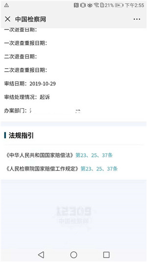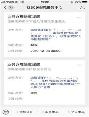 律师可对已绑定案件可查阅案件退补、起诉等程序性信息(如图4-2)。
