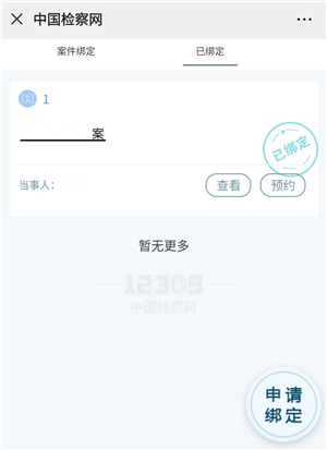 在已绑定案件中,选择要进行预约的案件,点击查看或预约,选择预约时间及事项(如图5-3、5-4)。