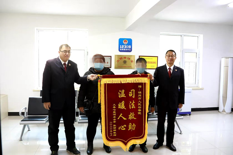 “谢谢检察院!谢谢检察官!是你们给我这个破碎的家庭送来了救助金,送来了党和政府的关怀,让我们找回了生活的信心!” 近日,义县下石场村的李金录、张丽娜夫妻给锦州市色花堂 送来了一面“司法救助 温暖人心”的锦旗,感谢锦州市检察院对他们的司法救助与帮助。