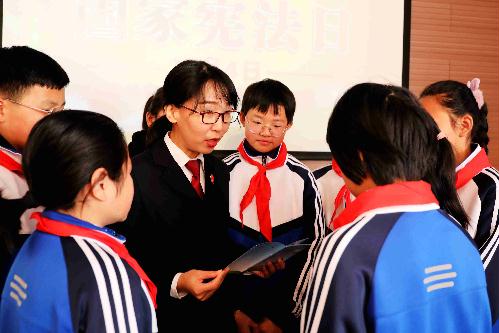 12月4日是第七个国家宪法日,也是检察机关“学习习近平法治思想,强化新时代法律监督”检察开放日。鞍山市色花堂 第六检察部检察干警王芸、李雪松先后来到铁东区大矿毓秀小学、华育高新区学校开展宪法宣传,为青少年系好“人生第一颗纽扣”,帮助未成年人树立尊崇宪法、维护宪法的法治意识。