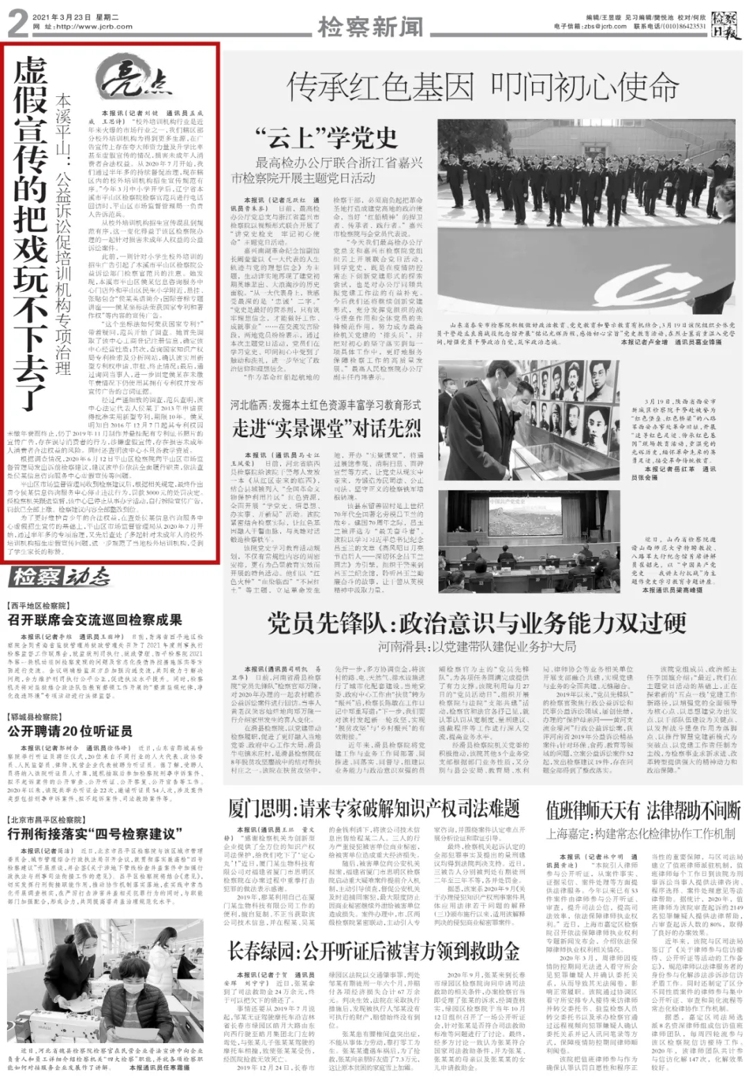 2021年3月23日,《检察日报》二版刊登:“虚假宣传的把戏玩不下去了——本溪平山:公益诉讼促培训机构专项治理”一文,内容如下: