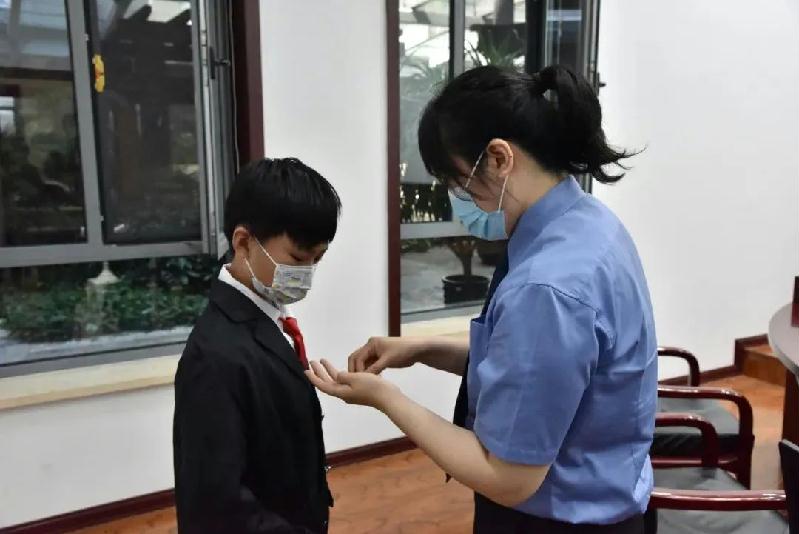 同学们换上了特别定制的司法职业制服,在工作人员的指导下规范地开设模拟法庭,接受现场教学,开展沉浸式职业体验,有模有样地来了一场略显稚嫩却严肃认真的庭审,在司法职业“初体验”中切实感受到法律的威严和公正的意义。