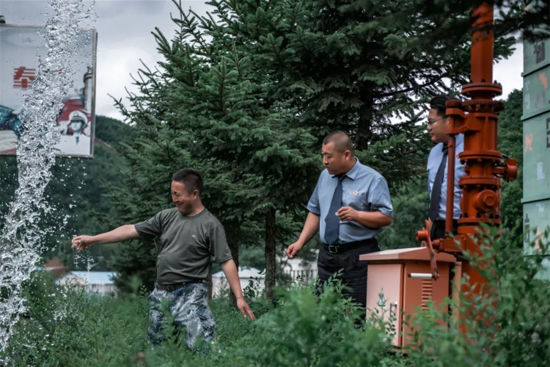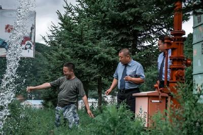 ▲检察干警丈量违法压占埋地军用输油管道的地上建筑
