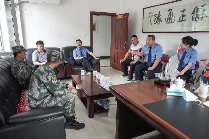 会议明确,检察机关将进一步扩大服务范围,在“积极履行公益诉讼职责共管共护军事设施”“为部队和官兵及家属提供法律服务”“积极关爱军人未成年子女”等方面提供具体的法律服务,并确立了“日常联络”和“定期联络”双机制共同运行的“军检共建”长效机制。驻军某部表达了对法律服务的迫切需要和由衷的感谢,当场提出多项需求,并安排各基层单位将法律援助问题整理形成《法律援助需求清单》。同时,驻军某部也发挥自身优势,同检察机关联合开展国家安全教育、英模教育等活动,在提升检察干警国防意识、汲取榜样力量方面给予支持。