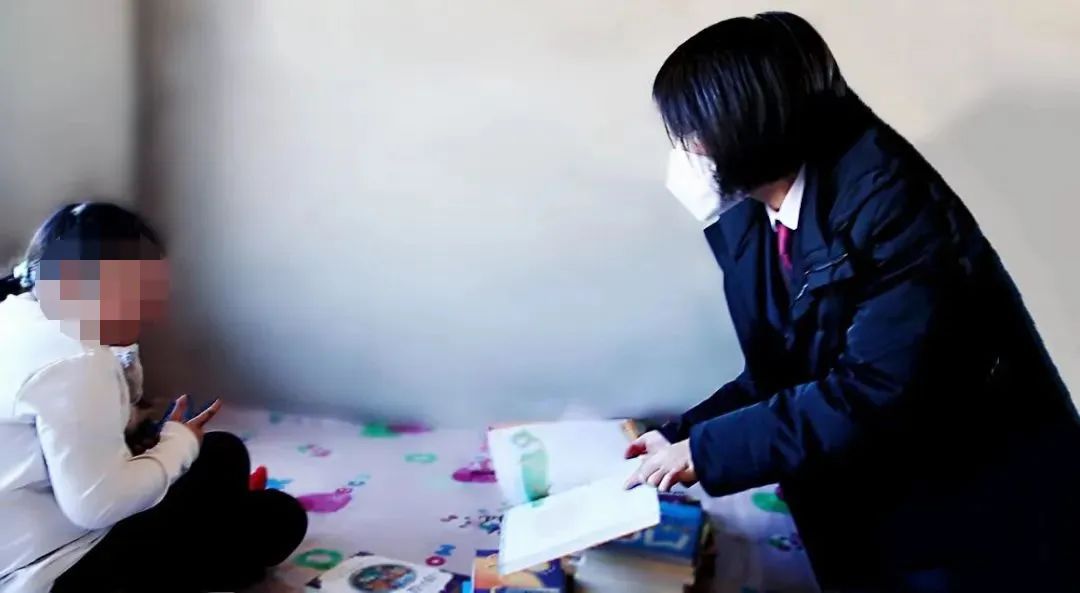 ▲检察干警鼓励小欣努力学习