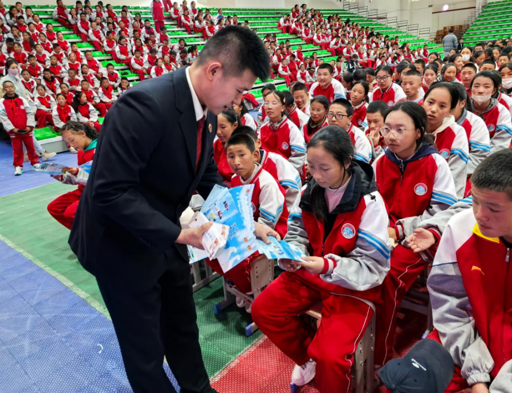 援藏期间,我还有幸与那曲市检察院普法团队一同走进多所中小学校,开展法治进校园活动。通过现场向学生们讲解法条、互动提问、发放宣传册等方式,深入浅出地讲解预防未成年人违法犯罪、防范校园欺凌等多方面内容,引导青少年规范自身行为习惯,让法治的阳光照亮每个孩子的成长之路。