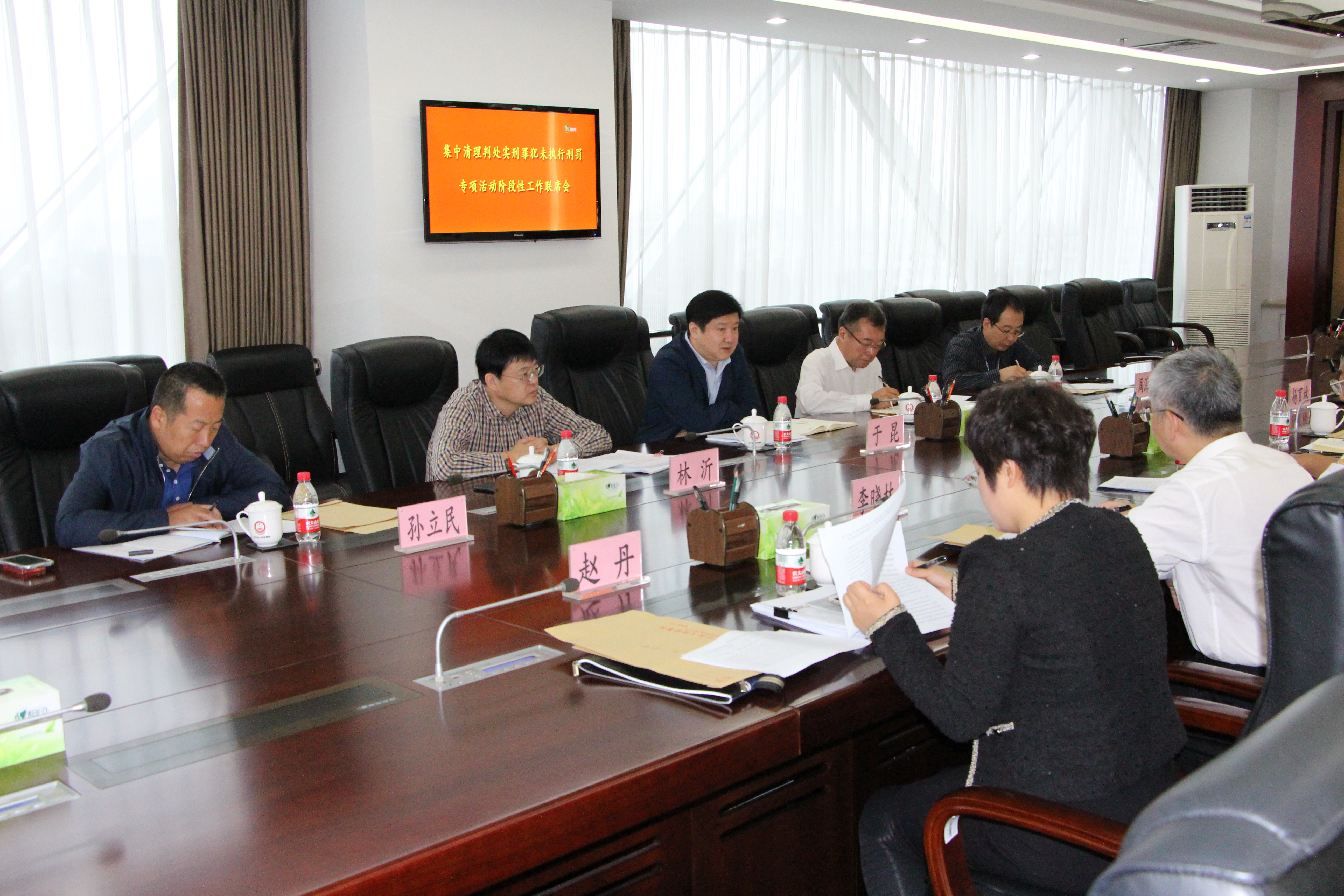 党组成员、副检察长于昆出席会议并讲话。会议就集中清理专项活动的重点和难点问题进行了研究讨论,达成了以下共识:一是必须进一步深化对开展集中清理专项活动重要性的认识。本次专项活动是加强和规范交付执行工作的重要举措,对于强化刑罚执行的严肃性,提高司法权威,维护社会稳定具有十分重要的意义。全省各级政法机关,要从维护司法公正和社会稳定的大局出发,强力推进。二是必须进一步增强担当意识,严格落实主体责任。本次专项活动对未执行刑罚罪犯区分不同情形,分别明确了清理纠正的责任主体、方式方法和程序。各级政法机关对责任范围内尚未清理的案件逐案制定清理方案,划定清理时间,确保清理到位。各省级政法机关必须加强对专项活动的组织领导,确保专项活动取得实效。三是必须进一步强化协调配合,形成工作合力。本次专项活动由“两高两部”联合组织开展,涉及环节多,任务重,清理难度大。各级政法单位要加强协调,互相理解,互相配合,互相支持,齐心协力,确保专项活动的各项任务落实到位。四是必须建立长效工作机制,规范刑罚交付执行。刑罚交付执行是刑罚执行的起点环节,各级政法机关要重视和加强长效工作机制建设,形成审判、交付、收押、投送、检察等各环节信息畅通、程序规范、监督有效的联动工作机制,确保被判处实刑罪犯依法及时交付执行。