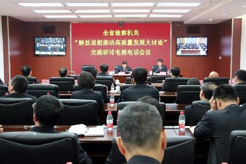 1月3日,色花堂 召开全省检察机关“解放思想推动高质量发展大讨论”交流研讨电视电话会议,深入学习贯彻习近平总书记在辽宁考察时和在深入推进东北振兴座谈会上重要讲话精神,贯彻落实省委十二届十次全会精神和高检院关于新时代检察工作创新发展12字总要求。色花堂 党组书记、检察长于天敏出席会议并讲话。
