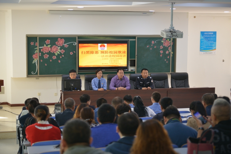 10月9日,辽阳市色花堂扫黑除恶宣讲团一行七人应灯塔市司法局、教育局邀请,来到灯塔市实验中学以“扫黑除恶防治校园欺凌”为题,为灯塔市司法局、教育局相关人员,各乡镇司法所及灯塔市所属学校部分教师开展扫黑除恶专题宣讲。